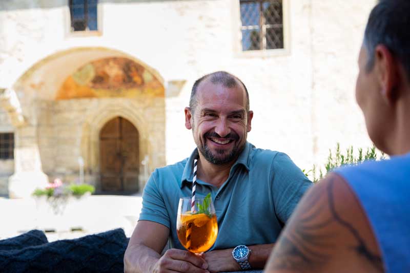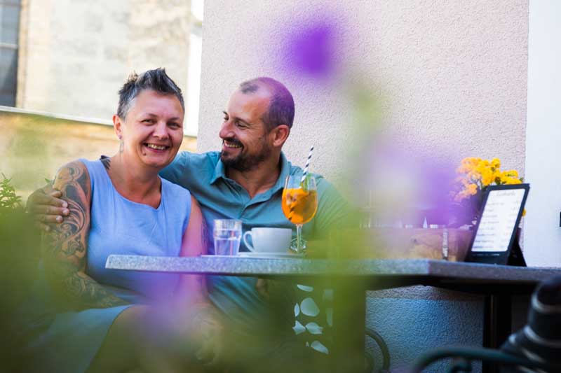 Besuchen Sie uns in unserem gemütlichen Gastgarten und genießen Sie Ihre Mehlspeisen, Imbisse und Getränke an der frischen Luft! Das einladende Ambiente unter den schattigen Bäumen wird Sie begeistern. An den hitzeexponierten Plätzen spannen wir bei Bedarf gerne einen Sonnenschirm für Sie auf. Da wir über lange Tische mit vielen Stühlen verfügen, können wir auch größere Gruppen im Freien bewirten. Bis zu einer Gruppengröße von zehn Leuten kochen wir auch gerne auf Vorbestellung.