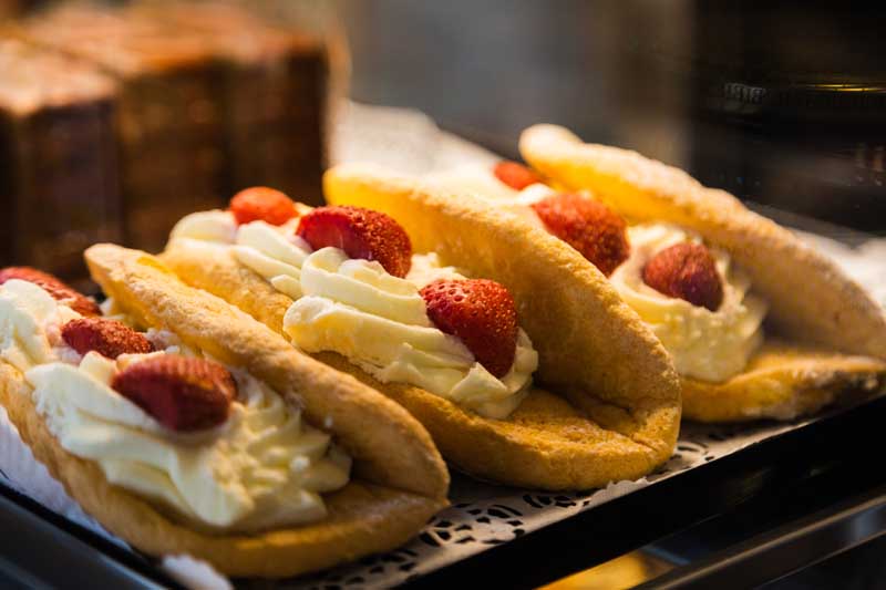 Wir bieten unseren Gästen eine große Auswahl an täglich frischen Mehlspeisen und Plundergebäck, Eis und Kuchen nach bewährter Konditortradition.
